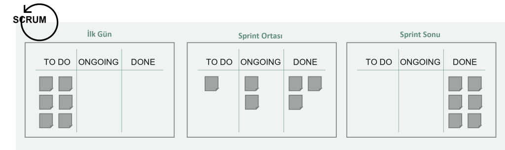 Özetle, hem Scrum’da hem de Kanban’da unutmamamız gereken metodoloji döngüsü: